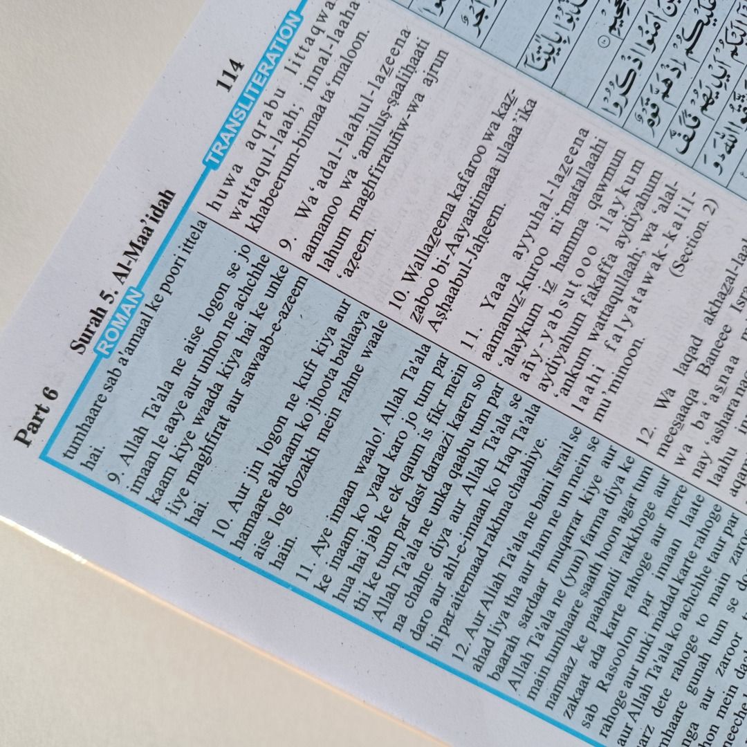 Page kholiye, Arabic padhiye, Roman se bolo, aur Hindi-Urdu se samajhiye.